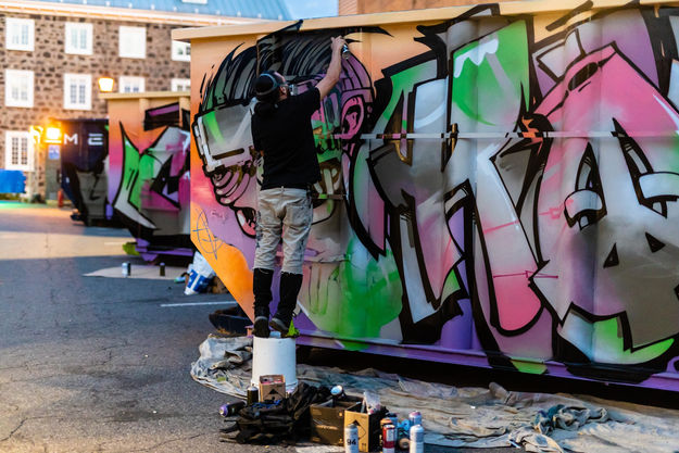 Souvent utilisés dans des contextes événementiels ou pour du branding, les conteneurs deviennent des toiles mobiles, pratiques et percutantes, parfaites pour des œuvres visuelles en mouvement.