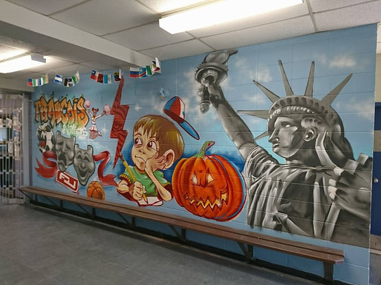 Les murales dans les écoles sont bien plus que décoratives — elles deviennent des outils pédagogiques, des sources d’inspiration et des repères identitaires pour les élèves et le personnel. Qu’il s’agisse de représenter des valeurs, de souligner l’histoire d’une institution ou de dynamiser un espace commun, chaque projet est pensé en collaboration avec l’établissement pour créer une œuvre significative et engageante.